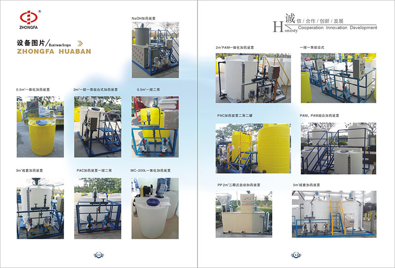 開始加藥時需啟動加藥器內(nèi)自備的藥液提升泵,用軟管將藥液從藥液桶內(nèi)抽入儲藥箱,提升泵具有自吸能力,工作前不需向泵體灌注液體.儲藥箱注滿藥液后即可調(diào)定加藥量,藥量調(diào)節(jié)后即可投藥運(yùn)行.