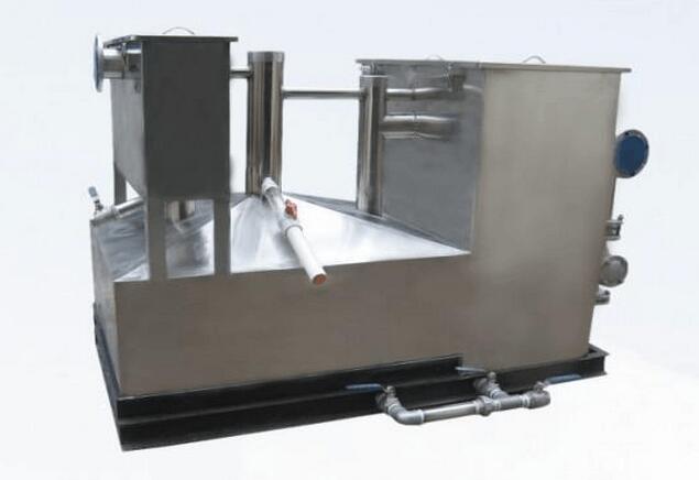 不銹鋼一體化隔油提升設備是把各類餐飲業含油脂、雜物的廢水分離開。含雜物的廢水首先經過不銹鋼除渣器后,雜物停留在除渣器內、油水自流到油水分離器、可經過高效氣浮設備、油水分離速度比傳統的分離速度增加了3倍以上。另配備自動加熱系統,氣溫低不會讓油脂結塊,并加速油水分離速度。通過高效隔油器,油會聚集在分離區的儲油區,采用放油閥排出,達到除渣、隔油等作用,最后將處理達標的廢水提升至室外檢查井和管網。